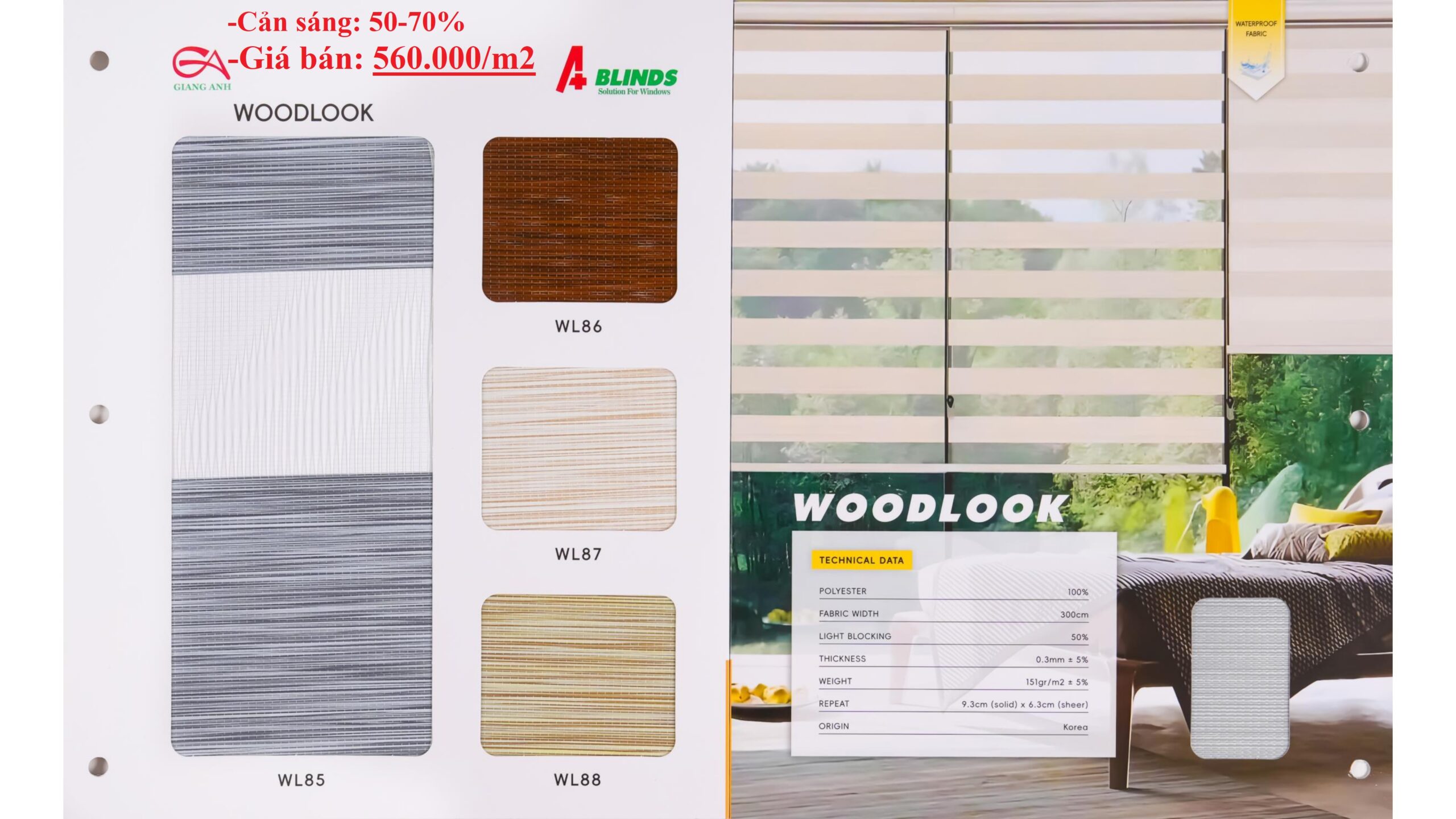 Rèm cầu vồng Hàn Quốc Ablinds Mã WOODLOOK WL