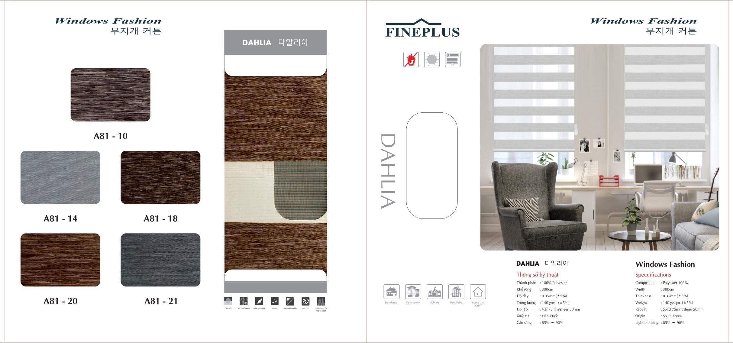 Cấu tạo, đặc điểm của Rèm cầu vồng Fineplus nhập khẩu từ Hàn Quốc, sản xuất bởi hãng HC Blinds