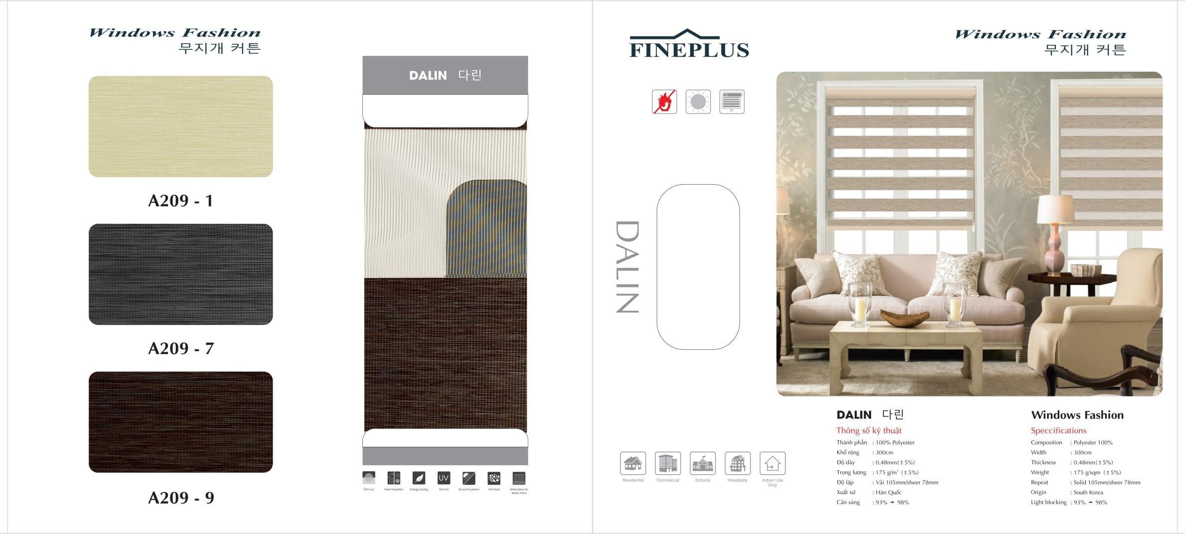 Rèm Cầu Vồng Hàn Quốc Fineplus Mã DALIN A209 với thiết kế vải dệt sang trọn, mẫu vải có bản lá rèm to, cản sáng tốt với 4 tông màu tùy chọn. DALIN nằm ở phân khúc cận cao cấp nhưng cản sáng vẫn rất tốt lên đến 93-98% nhờ mật độ dệt dày với trọng lượng lên đến 175g/m2. Mẫu cầu vồng mang vẻ sang trọng, lịch lãm cho cả phòng khách hay phòng ngủ cản hộ.