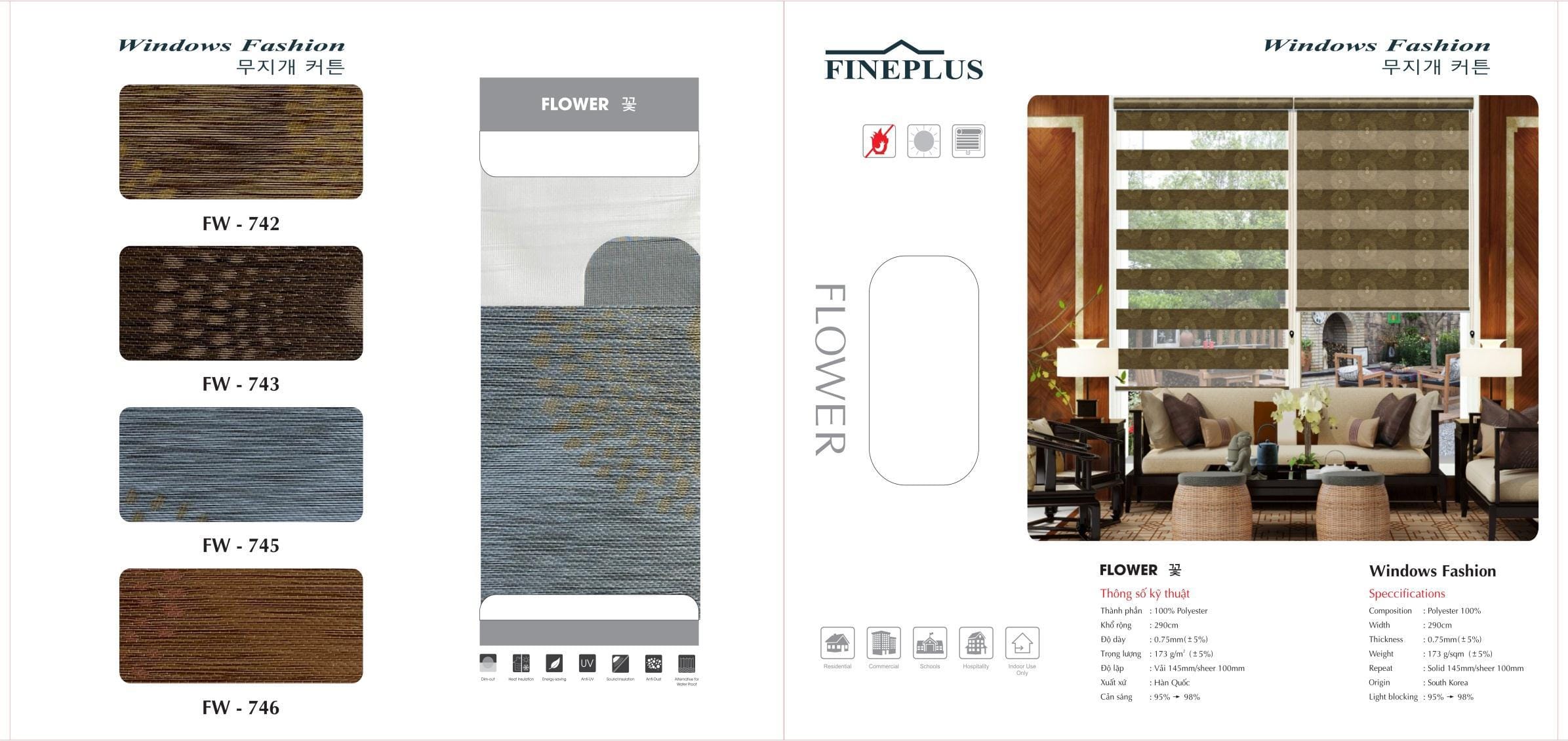 Cấu tạo, đặc điểm của Rèm cầu vồng Fineplus nhập khẩu từ Hàn Quốc, sản xuất bởi hãng HC Blinds